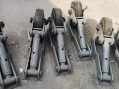 吊盘固定器![]() 详细信息 稳盘凿井固定器)是立井施工中吊盘的关键部件,直接影响工程质量和进度,既是工作盘又是保护盘。吊盘和井壁间隙保持不小于100mm,要使稳盘在井筒中摆动的空间,因此,提升和工作期间的稳定固定极为重要,吊盘固定装置是吊桶安全顺利通过吊盘喇叭口的重要设施,又叫吊盘稳定器、稳盘固定装置、保护盘固定装置。以往其他的固定装置,使用中均存在不同程度的弊端,改进后的胶轮限位固定装置,利用聚氨酯材料的弹性和压力弹簧的反弹力,使稳盘避免了在井筒中的横向摆动,又保证了吊盘正常的垂直升降,有利于消除安全隐患和加快凿井进度